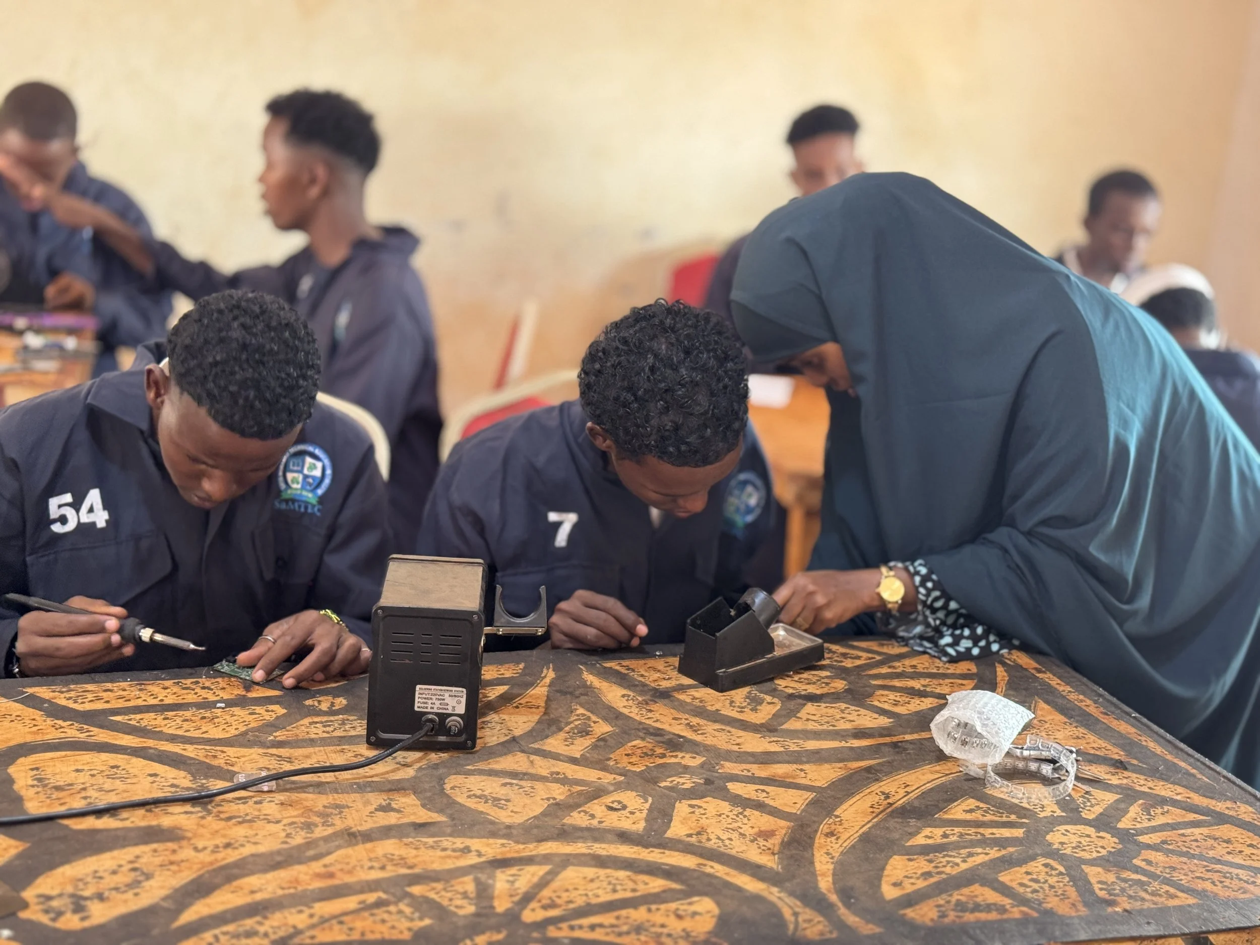Najma went on to graduate top of her class, outperforming all her male peers. Her excellence earned her something rare: a job offer from the very TVET center that trained her and today, Najma is a certified trainer in mobile repair. She teaches both men and women, and her classroom is now a space where change is visibly taking root. When she started, she was the only female in the course. Now, her class includes three girls, and more are enrolling in other technical courses, including electrical installation