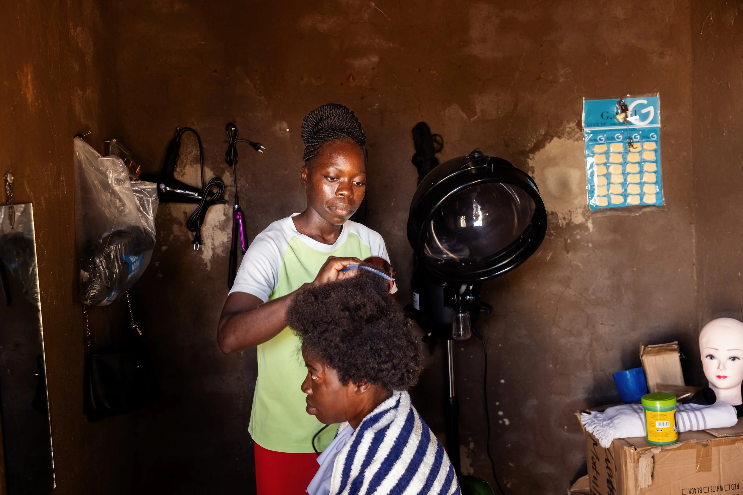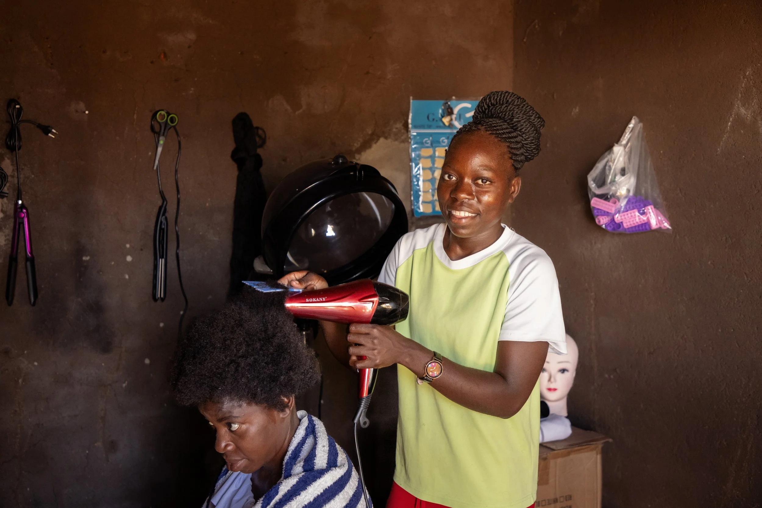 She enrolled in SOS Children's Villages vocational training center in Lilongwe, Malawi where she was trained in salon management and hairdressing.
